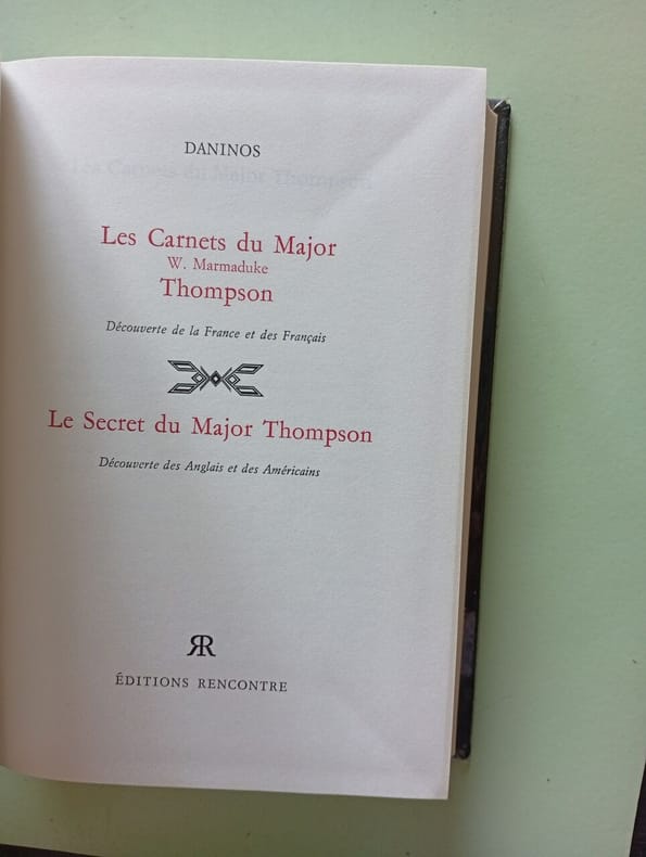 Éditions Rencontre 1954 492 pages 1954. 492 pages. Les Carnets du Major Thompson publié par Pierre Daninos en 1954 est un récit humoristique présenté comme la traduction des observations d'un major anglais retraité de l'armée des Indes qui explore et analyse avec un regard extérieur et ironique les coutumes les comportements et les particularités des Français