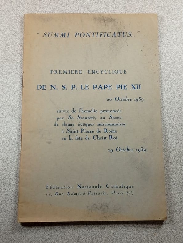 20 oct. 1939. Classification Dewey : 262.1-Chefs de l'Eglise