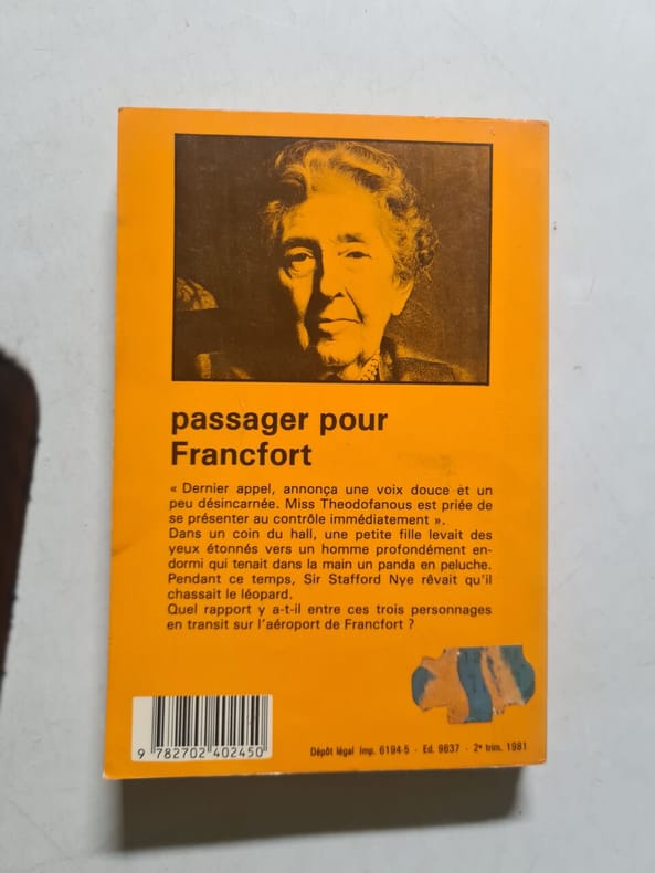 PASSAGER POUR FRANCFORT : Traduction nouvelle de Janine Lévy / CINQ HEURES VINGT-CINQ : Traduction nouvelle d'Elisabeth Luc. Classification Dewey : 820-Littératures anglaise et anglo-saxonne