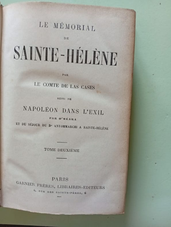Garnier Frères Libraires-Editeurs 1895 1895. Le Mémorial de Sainte-Hélène est un récit historique rédigé par le comte Emmanuel de Las Cases compagnon d'exil de Napoléon Bonaparte à Sainte-Hélène. Il constitue un journal détaillé des paroles et actions de l'Empereur durant dix-huit mois devenant une source essentielle pour l'historiographie et la légende napoléoniennes. L'ouvrage publié initialement en 1823 est célèbre pour avoir été le livre de chevet de Julien Sorel dans 'Le Rouge et le Noir' de Stendhal