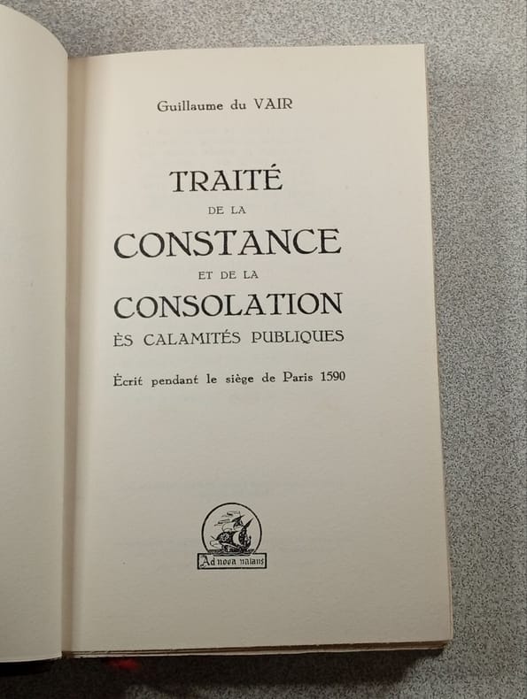 Collection 'L'Oeuvre nécessaire', dir. par M. Rainer Biemel. Ecrit pendant le siège de Paris en 1590. Ouvrage tiré à 2650 exemplaires du Bouffant G.R. Ex. n° 284. Classification Dewey : 97.2-Dédicace, envoi
