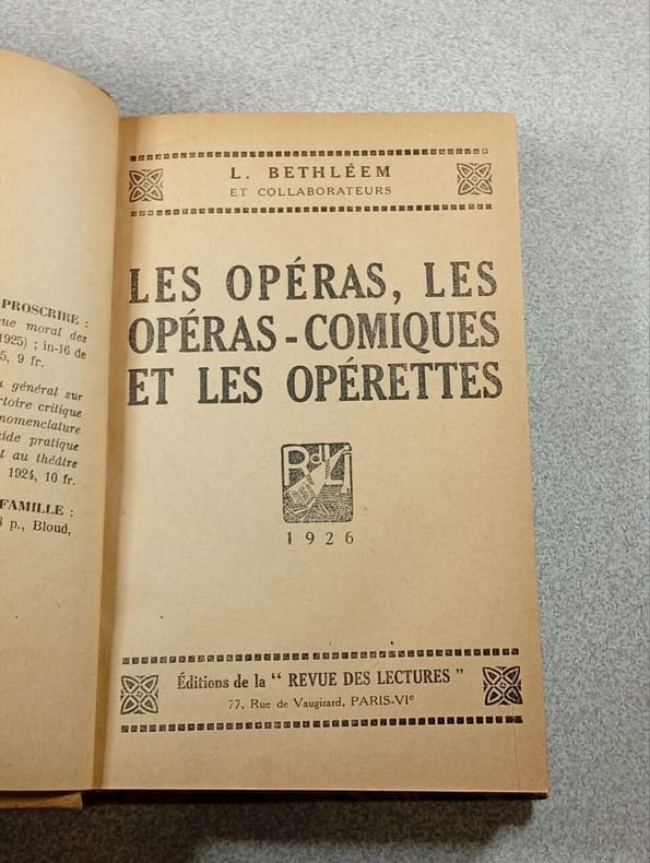 Dans l'introduction de cet ouvrage, l'Abbé Bethléem déclare vouloir combler une lacune. Pour suppléer à la défaillance générale de la critique, il étudie les oeuvres musico-lyriques au point de vue de la vérité historique, de la religion et de la morale.Ouvrage qui étudie les oeuvres musico-lyriques au point de vue de la vérité historique, de la religion et de la morale, le classement étant un classement alphabétique des auteurs. Répertoire du genre, arrangé par ordre alphabétique avec des notices critiques et précédé d'une introduction.- Bon état, papier jauni. Remise de 20% pour toutes commandes supérieures à 200 €