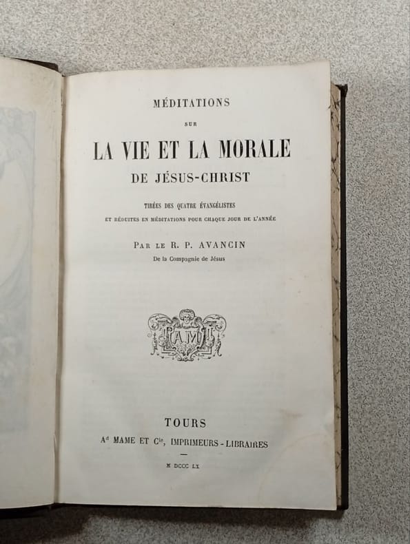 Tours A. Mame et Cie, Imprimeurs-Libraires 1851 in 12 (16,5x10,5) 1 volume reliure cartonnage gaufré noir de l'éditeur orné d'un important décor géométrique doré avec attributs dorés au centre, 352 pages. Bibliothèque pieuse des maisons d'éducation. Bel exemplaire ( Photographies sur demande / We can send pictures of this book on simple request )