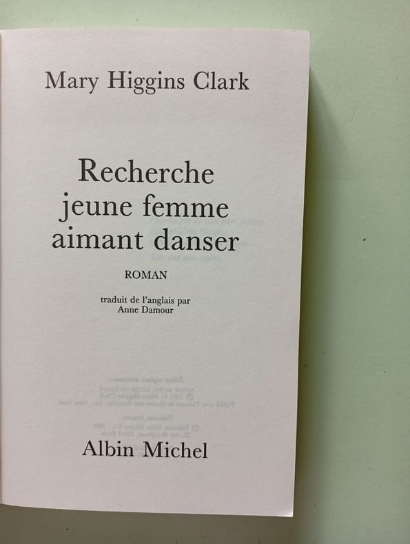 1992 1992. Mary Higgins Clark: Recherche jeune femme aimant danser/ France Loisirs 1992 . Mary Higgins Clark: Recherche jeune femme aimant danser/ France Loisirs 1992