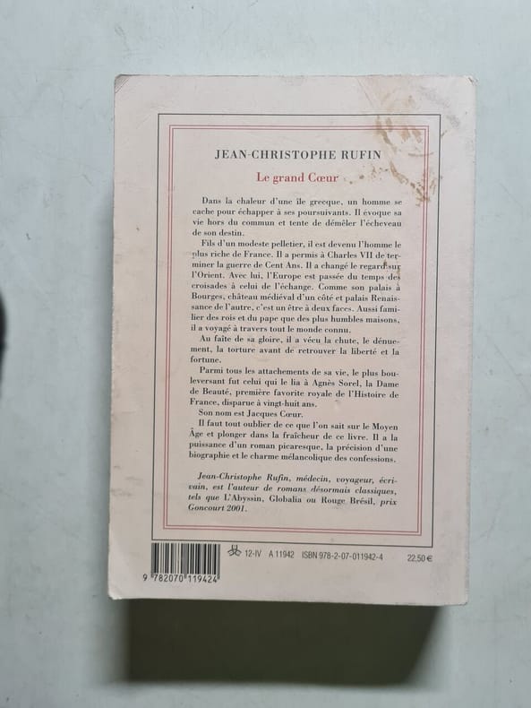 Gallimard 2026 512 pages in8. 2026. Broché. 512 pages. Le Grand Cœur est un roman historique de Jean-Christophe Rufin qui retrace sous forme de pseudo-mémoires la vie exceptionnelle de Jacques Cœur. Fils d'un modeste pelletier devenu l'homme le plus riche de France et argentier du roi Charles VII il contribua à la fin de la guerre de Cent Ans et ouvrit de nouvelles perspectives sur l'Orient. Le récit qui commence alors qu'il se cache sur une île grecque explore son destin hors du commun et ses rêves d'un monde nouveau