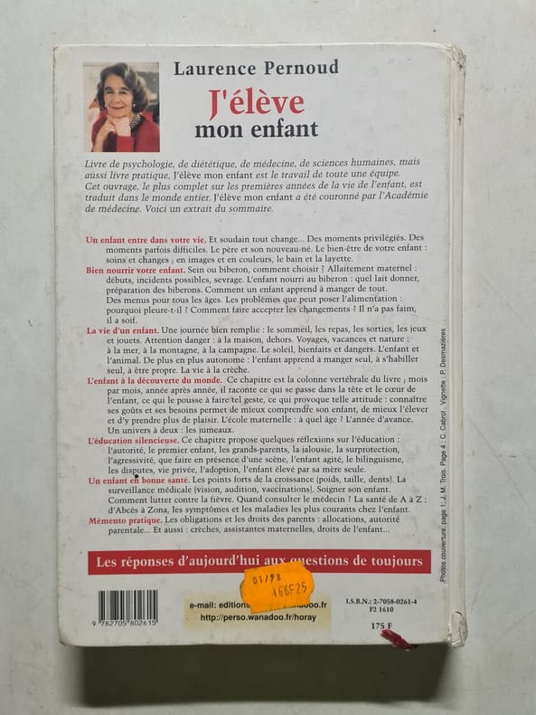 Pierre horay / Bibliotheque des parents 503 pages 17 3cm x 25 4cm x 2 4cm. Sans date. relié. 503 pages. J'élève mon enfant est un guide pratique pour les parents écrit par Laurence Pernoud et publié par les éditions Horay. Il aborde l'éveil psychologique de l'enfant et les difficultés pouvant survenir afin de conforter les parents dans leurs capacités éducatives. Le livre est mis à jour chaque année comme son homologue J'attends un enfant