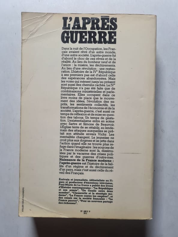 Le grand roman, qui n'en est pas un, de l'Après-Guerre, de la réinsertion difficile des exclus de l'Epuration, de la conquête d'une petite place au soleil sans renier un idéal et de la résurgence, encore bien timide, de la droite nationale jusqu'à l'exécution du colonel Bastien-Thiry « le dernier mort de mon Après-Guerre ». Toute l'histoire du mouvement national de 1945 à 1962 contés avec la verve, la gouaille et la chaleur de François Brigneau... François Brigneau, de son vrai nom Emmanuel Allot (1919-2012), est issu d'une famille bretonne laïque, son parcours le classe d'abord à gauche, plutôt du côté des socialistes avant de s'engager du côté des néosocialistes, partisans d'un pacifisme intégral face à la menace hitlérienne, dont le chef de file était alors l'ancien leader socialiste Marcel Déat. François Brigneau le suivra ensuite dans la création du parti collaborationniste, le Rassemblement national populaire (RNP). Un engagement sans faille qui le conduira ensuite dans les rangs de la milice. Emprisonné à Fresnes à la Libération dans la même aile que l'écrivain collaborationniste Robert Brasillach, auquel il consacrera, d'ailleurs, un de ses cahiers. Il restera lié au beau-frère de celui-ci, Maurice Bardèche, principal défenseur des thèses révisionnistes en France. Toujours en référence à l'auteur de “Notre avant-guerre”, François Brigneau écrira plus tard “Mon après-guerre”. Dès sa sortie de prison, n'ayant renoncé en rien à ses idées, il s'engage aux côtés de Jean-Marie Le Pen au sein du Front national pour l'Algérie française (Fnaf). Il continue par ailleurs son activité de journaliste, de polémiste en participant à la création du journal « Rivarol ». Il intègrera ensuite les rédactions de « Minute » puis finira par signer dans « National-hebdo », le journal du Front National. Désormais les frais d'envoi sont de 6 € seulement pour les livres jusqu'à 1 kg (colissimo suivi), pour la France métropolitaine.