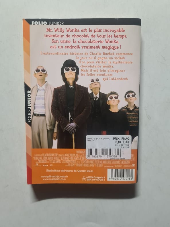 Gallimard Jeunesse Sans date. Le jeune Charlie Bucket passionné de chocolat rêve de gagner l'un des cinq Tickets d'Or cachés par le légendaire fabricant Willy Wonka lui permettant de visiter sa mystérieuse et magique chocolaterie. Cette aventure est menée avec un humour féroce et une grande fantaisie par Roald Dahl