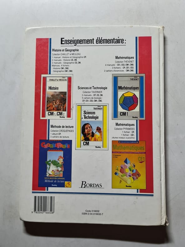 Bordas Sans date. Manuel scolaire d'histoire destiné aux classes de CM1 et CM2 publié par Bordas en 1989. Il s'agit d'un ouvrage pédagogique illustré faisant partie de la collection "Chaillet et Meuleau"