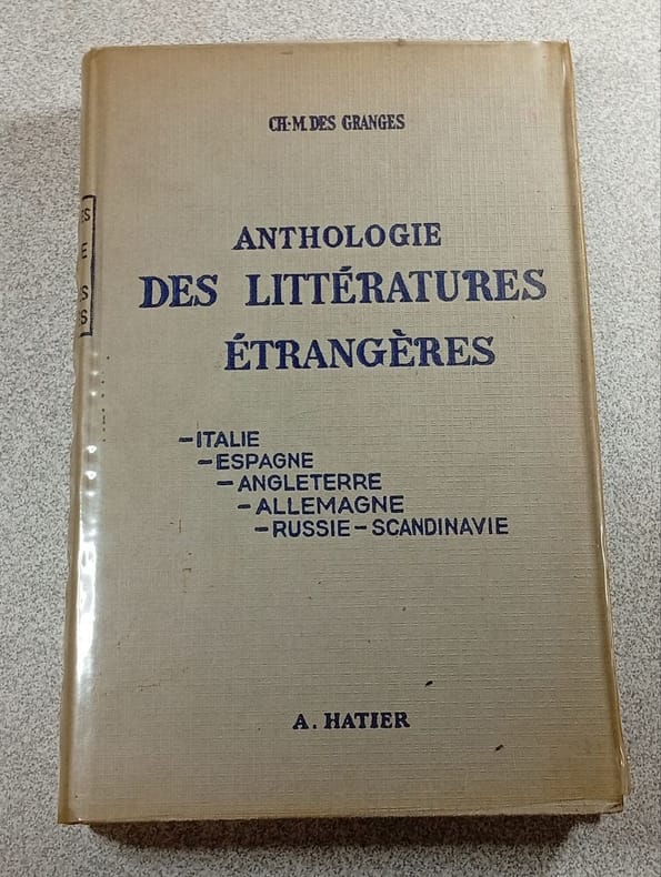 Relié bon état . Contenu propre . 1938. 668 pages . ANTHOLOGIE DES LITTERATURES ETRANGERES (ITALIE, ESPAGNE, ANGLETERRE, ALLEMAGNE, RUSSIE, SCANDINAVIE). (Livre) ~ DES GRANGES CH.-M.