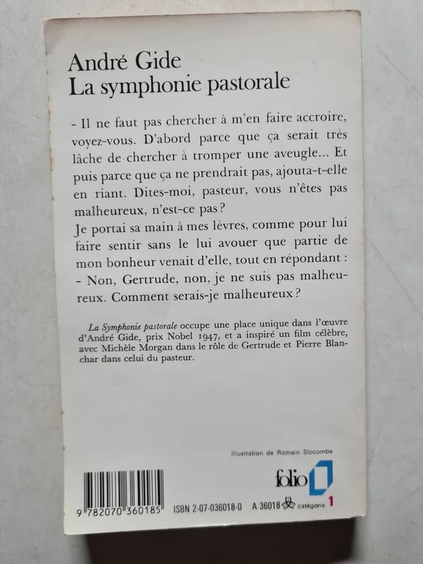 Gallimard 1972 149 pages 11x18x2cm. 1972. Poche. 149 pages. Un pasteur recueille et éduque une jeune fille aveugle nommée Gertrude développant pour elle des sentiments ambigus qu'il justifie par de bonnes intentions. Lorsqu'elle retrouve la vue elle découvre la réalité de leurs relations et ses véritables sentiments ce qui conduit à une issue tragique. Le roman explore l'écart entre les principes moraux affichés et les pulsions intimes