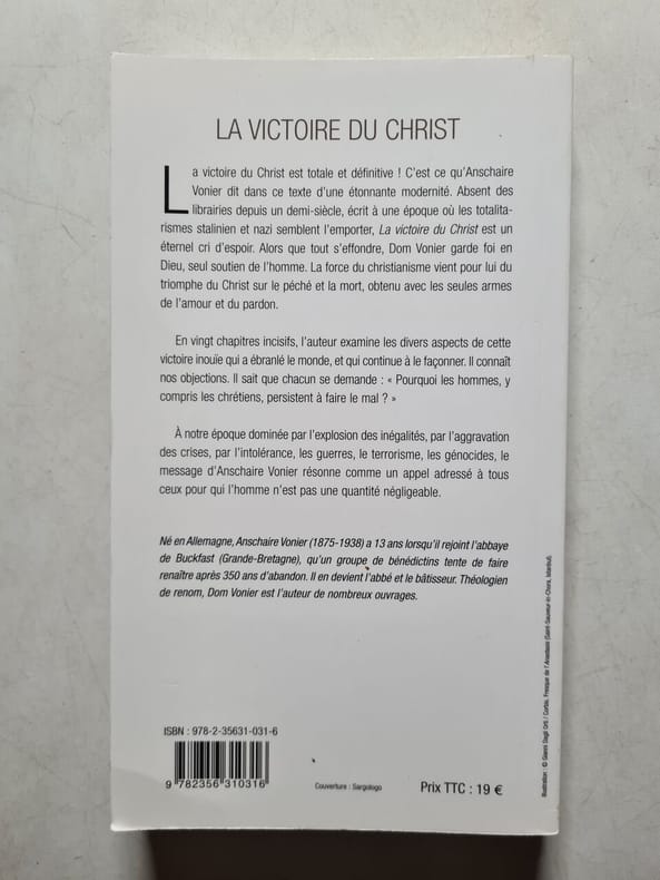 L'oeuvre Sans date. Écrit par le bénédictin Dom Anschaire Vonier dans le contexte des totalitarismes du XXe siècle cet essai théologique présente la victoire du Christ sur le péché et la mort comme un triomphe définitif obtenu par l'amour et le pardon. L'ouvrage structuré en vingt chapitres examine les multiples aspects de cette victoire comme source d'espérance éternelle et de force pour le christianisme