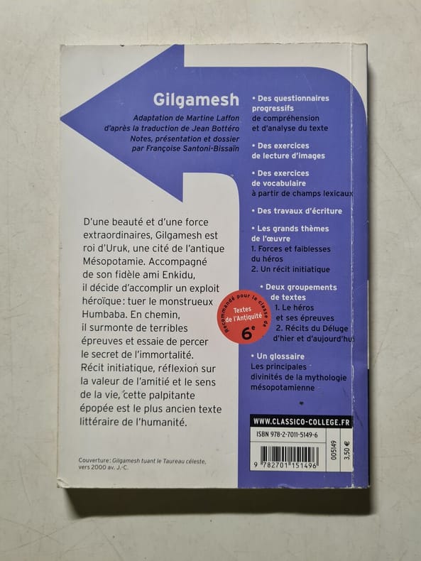 Editeurs Berg International ,2006, in-8 de 126 pages ,Du XXVe au VIIe siècle avant notre ère, un texte circulait dans tout le Proche-Orient ; il racontait la quête d'un roi, bâtisseur des remparts d'Ourouk vers 2800 ou 2600 avant J.-C. : Gilgamesh. Fils de déesse, plus divin qu'humain en son corps : " Pour deux tiers il est dieu, pour un tiers il est homme " dit l'Epopée, et plus homme que dieu en son âme car il connut l'incertitude, le doute, l'amour, la révolte, le désespoir, la sagesse, la mort. Du sumérien, ce texte fut traduit en babylonien, en assyrien, en hittite, en hourite ; il fit partie de quelques grandes bibliothèques dont celle d'Assourbanipal. Mais le Proche-Orient ancien devait connaître de grands bouleversements : les Grecs, les Romains l'envahirent et lui imposèrent leurs cultures. Les siècles passèrent ; L'Epopée de Gilgamesh tomba dans l'oubli. Il fallut attendre le XIXe siècle, époque des grandes découvertes archéologiques, pour que ce texte, admirable et essentiel comme les chefs-d'uvre lentement tissés par le divin imaginaire, revienne enfin à la mémoire. Texte éternel car il relate la quête d'un homme déchiré par son désir de transcender son état. Texte d'une beauté que le temps n'est pas parvenu à altérer et qui nous fait découvrir, aimer, Gilgamesh le héros taillé dans le granit le plus dur, Enkidou son ami, son frère, modelé dans l'argile la plus tendre. Cette version de L'Epopée de Gilgamesh a été établie d'après les fragments des tablettes sumériennes, babyloniennes,, assyriennes, hittites et hourites. La traduction et l'adaptation sont dues à Abed Azrié, poète et musicien syrien, qui a mis le texte en musique et l'a interprété (Disques Naïve). ,broché ,Très bon état , .Isbn : 9782911289903.(2 photos du livre sur mon site https://www.vieuxlivre.fr) .Les frais de port pour la France sont offerts à partir de 20 euros d'achat (Mondial relay )et 30 d'achat (colissimo suivi ).