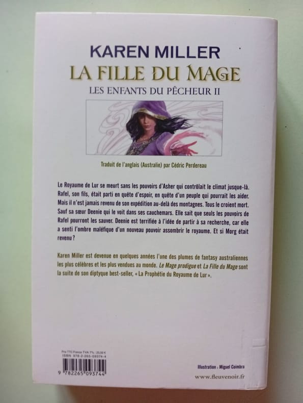 FLEUVE EDITIONS 2012 540 pages 15 4x4x24cm. 2012. Broché. 540 pages. Deuxième tome du diptyque 'Les Enfants du Pêcheur' ce roman suit Deenie la fille du mage Asher qui découvre qu'elle possède les plus grands pouvoirs magiques de sa famille. Elle part en quête pour sauver son frère Rafel disparu au-delà des montagnes alors qu'il cherchait de l'aide pour le Royaume de Lur qui se meurt et affronte des dangers qui mettent en péril son intégrité et son âme