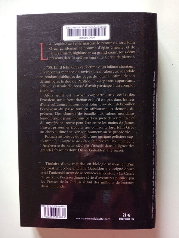 Presses de la Cité 2008 408 pages 15x3x23 8cm. 2008. Broché. 408 pages. En 1758 Lord John Grey est victime d'un chantage : un inconnu menace de rendre publiques les pages du journal intime de son défunt père le duc de Pardloe pour raviver un scandale lié à un complot jacobite qui avait conduit au suicide de ce dernier dix-sept ans plus tôt. Ce roman historique mêlé d'enquête policière plonge le lecteur dans l'aristocratie anglaise et les intrigues politiques du XVIIIe siècle