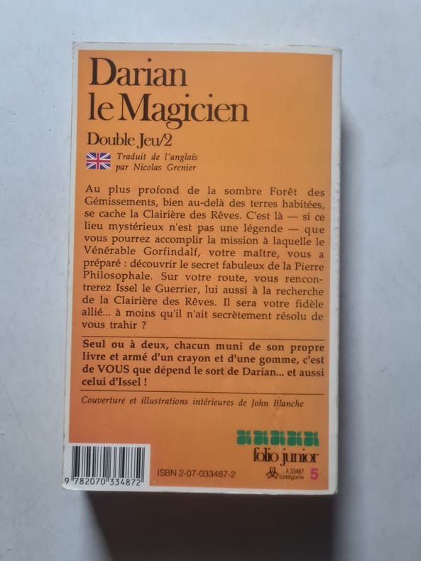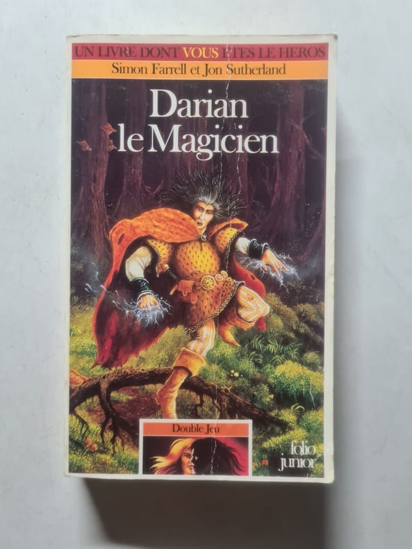 folio junior Sans date. Darian le magicien est un livre jeunesse de fantasy publié en 1988 écrit par Simon Farrell et Jon Sutherland illustré par John Blanche et traduit de l'anglais par Nicolas Grenier. L'histoire suit les aventures du magicien Darian