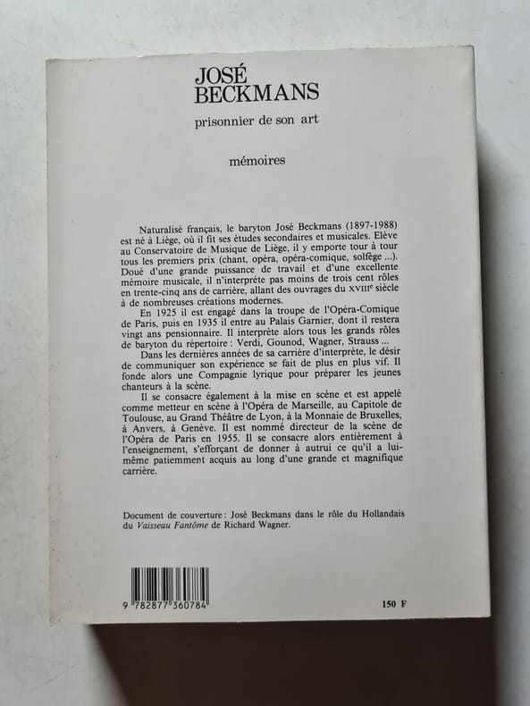 Librairie Séguiér Sans date. Mémoires autobiographiques de l'artiste José Beckmans écrits en collaboration avec Yvonne Dubois explorant sa vie et son rapport à son art