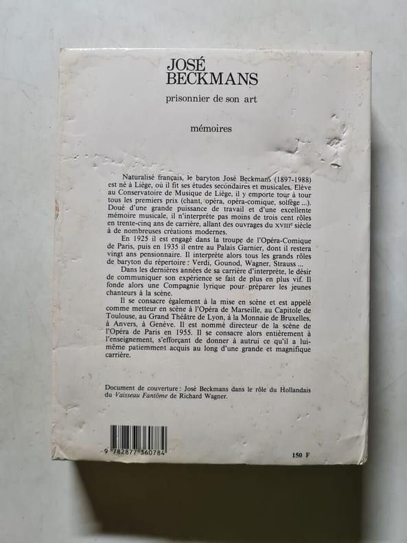 Librairie Séguiér Sans date. Mémoires autobiographiques de l'artiste José Beckmans écrits en collaboration avec Yvonne Dubois explorant sa vie et son rapport à son art