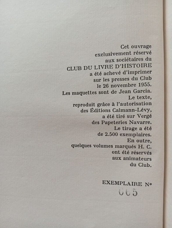 S.l., Club du livre d'histoire , s.d. ; in-8, cartonnage de l'éditeur. Sous boitage reliure frotté.