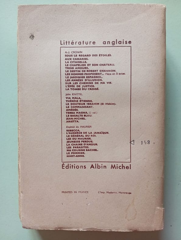 Éditions Albin Michel 1957 1957. Un Anglais solitaire nommé John en vacances en France se voit impliqué dans un dangereux échange d'identité. Le roman explore les thèmes du bien et du mal de la rédemption et de la quête de sens à travers ce suspense psychologique aux accents gothiques