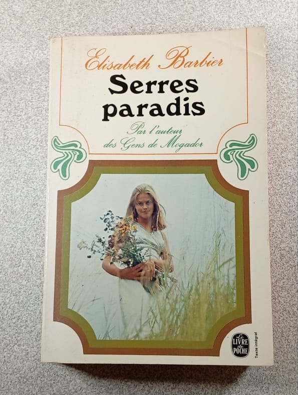 Edition Le Livre de Poche, 1973. Les gens de Mogador : 6 volumes in-12. Brochés. Couvertures illustrées des photos en couleurs des acteurs de la série télévisée écrite et réalisée par Robert Mazoyer d'après la saga romanesque éponyme d'Élisabeth Barbier et diffusée à partir du 18 décembre 1972 sur la première chaîne de l'ORTF (Marie-France Pisier, Brigitte Fossey, Marie-José Nat et Jean-Claude Drouot) Tomes 1 et 2 : Julia Vernet ; Tomes 3 et 4 : Ludivine ; Tomes 5 et 6 : Dominique. 575, 597, 539, 509, 575, 636 pages. Serres paradis : 1 volume in-12. Broché. Couverture illustrée. 440 pages. Très bon état de l'ensemble