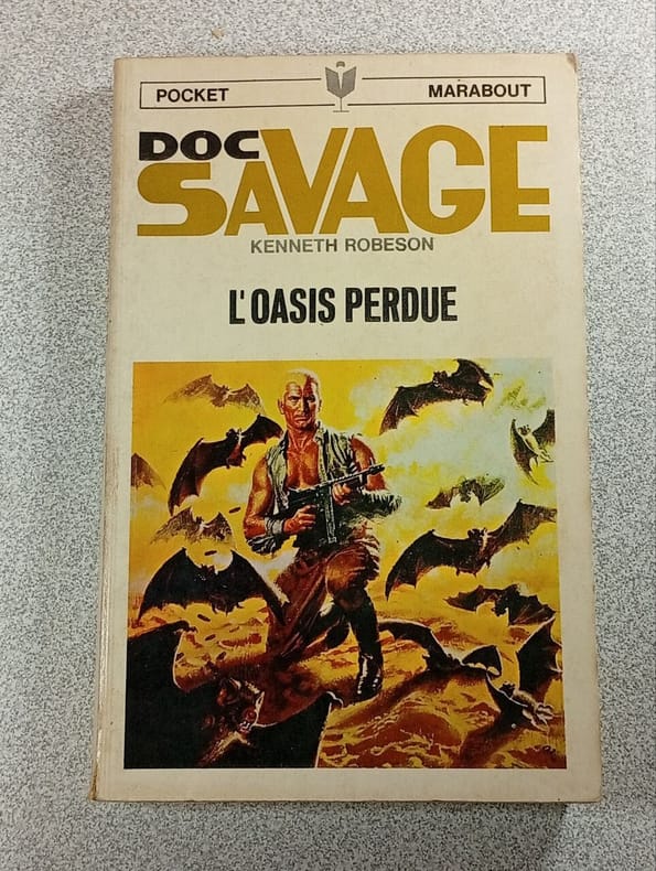 Pocket Marabout n° 33 / Collection Doc Savage n° 7 de 1967. In-12 broché de 153 pages au format 18 x 11,5 cm. Superbes couvertures illustrée par Jim Bama. Illustrations par Henri Lievens. Dos bien carré. Plats et intérieur frais. Superbe état proche du neuf. Rare édition originale de cette aventure de Doc Savage, surtout dans un tel état de fraicheur.