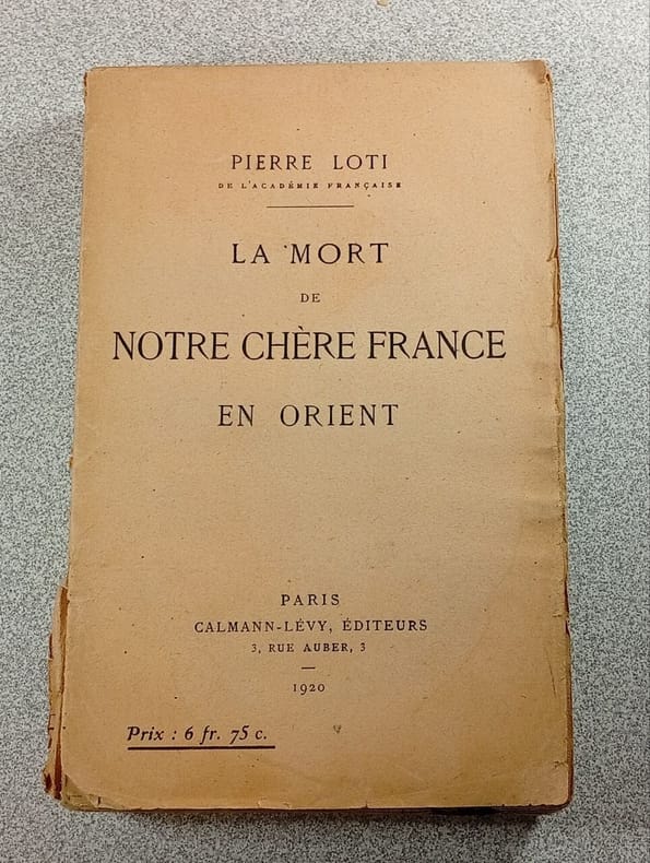 Édition originale. Exemplaire non rogné à grands témoins. Un des 175 exemplaires sur papier de Hollande (n° 53), après 25 exemplaires sur papier impérial du Japon. Recueil de notes, de témoignages et de lettres relatifs à la situation française en Turquie. "Ce livre, si j'ose l'appeler ainsi, sera le quatrième que j'aurai écrit pour défendre la plus juste des causes, et écrit, hélas ! dans une stupeur et une indignation croissantes devant tant d'irréductibles partis pris et tant d'entêtements aveugles. Il ne mérite même pas le nom de livre ; il n'est qu'un incohérent amas de documents et de témoignages". (Extrait de l'avant-propos).