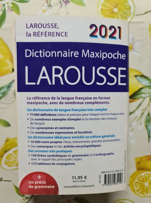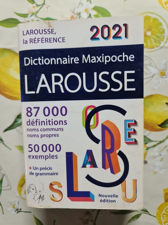LAROUSSE. 2021. In-8. Broché. Etat d'usage, Couv. convenable, Dos plié, Quelques rousseurs. 1620 pages - texte sur deux colonnes - couverture rempliée - une page avec adhésif sur la charnière. . . . Classification Dewey : 443-Dictionnaire français