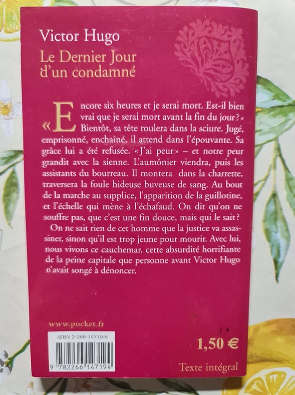 1881 Paris Hetzel & Cie / Maison Quantin ca 1881 1 in-12 Reliure Demi-Chagrin rouge à nerfs, fleurons 187 [pp] "Victor Hugo a vingt-six ans quand il écrit, en deux mois et demi, "Le Dernier Jour d'un Condamné", roman qui constitue sans doute le réquisitoire le plus véhément jamais prononcé contre la peine de mort.Nous ne saurons pas qui est le Condamné, nous ne saurons rien du crime qu'il a commis. Car le propos de l'auteur n'est pas d'entrer dans un débat mais d'exhiber l'horreur et l'absurdité de la situation dans laquelle se trouve n'importe quel homme à qui l'on va trancher le cou dans quelques heures.Ce roman - aux accents souvent étrangement modernes - a une telle puissance de suggestion que le lecteur finit par s'identifier au narrateur dont il partage tour à tour l'angoisse et les vaines espérances. Jusqu'aux dernières lignes du livre, le génie de Victor Hugo nous fait participer à une attente effarée : celle du bruit grinçant que fera le couperet se précipitant dans les rails de la guillotine.Quiconque aura lu ce livre n'oubliera plus jamais cette saisissante leçon d'écriture et d'humanité.""" ... Un homme nommé Claude Gueux, pauvre ouvrier, vivait à Paris en 1831. Il avait avec lui une fille qui était sa maîtresse et un enfant de cette fille... Il était capable, fort habile, intelligent, fort mal traité par l' éducation, fort bien traité par la nature, ne sachant pas lire mais sachant penser. Un hiver, l' ouvrage manqua. L' homme, la fille et l' enfant eurent froid et faim. L' homme vola. Il en résulta trois jours de pain et de feu pour la femme et pour l' enfant et cinq ans de prison pour l' homme. Il fut envoyé faire son temps à la Maison Centrale de Clairvaux.On va voir ce que la Société en fait."Relation allégorique d' un drame individuel, cet ardent plaidoyer contre la peine de mort et contre la prison met à nu le mécanisme de la brutalité sociale qui ne sait répondre à la détresse que par la répression. Avec Claude Gueux, Victor Hugo n' est plus simplement romancier ou poète, il conquiert une place éminente auprès des plus grands orateurs de la Liberté.Cinq ans de prison pour ne pas voir sa femme grelotter de froid, son enfant mourir de faim Souffrir les humiliations imposées par un garde-chiourme sans scrupules. Puis, se révolter contre les vexations et le mépris... Est-ce un crime de vouloir défendre sa dignité, de vouloir rester homme, malgré tout?" - Cité de Babelio