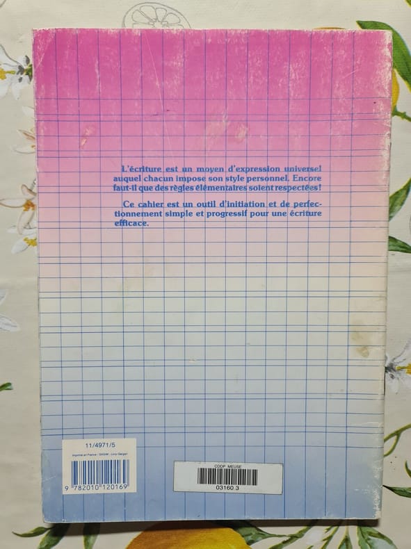 Livre. Cahier d'écriture pour l'élève, non utilisé. Editions Armand Colin, 1956.