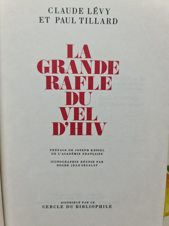 Cercle du bibliophile Sans date. Ce livre documente la rafle du Vélodrome d'Hiver du 16 juillet 1942 un événement majeur de la Seconde Guerre mondiale en France où des milliers de Juifs ont été arrêtés. Il s'agit d'un ouvrage historique écrit par Claude Lévy et Paul Tillard basé sur des recherches et une iconographie réunie par Roger Jean Ségalat