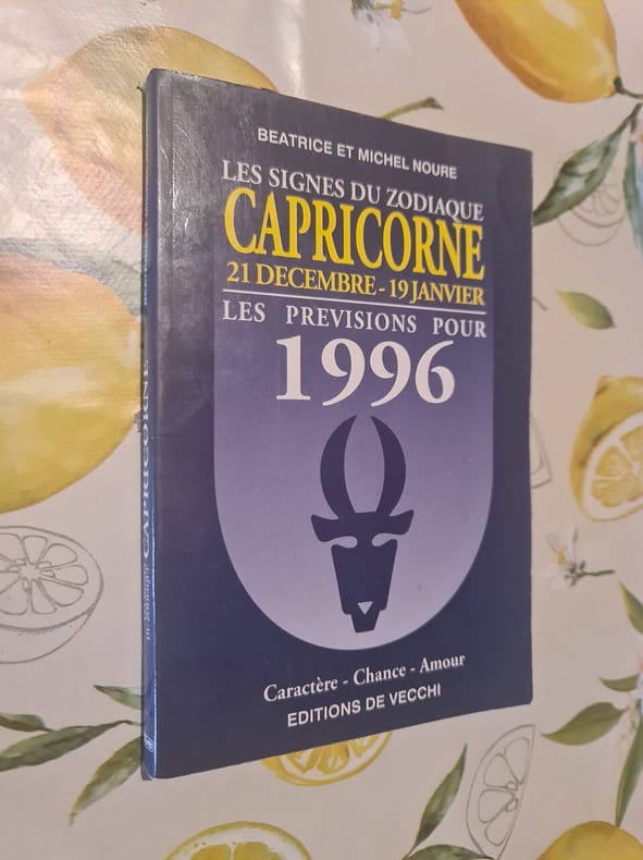 De Vecchi Editions 1995 1995. Broché. Ouvrage d'astrologie proposant des prévisions pour l'année 1996 spécifiquement pour le signe du Capricorne couvrant les domaines de la vie sentimentale professionnelle et financière. Il s'inscrit dans une série dédiée aux signes du zodiaque