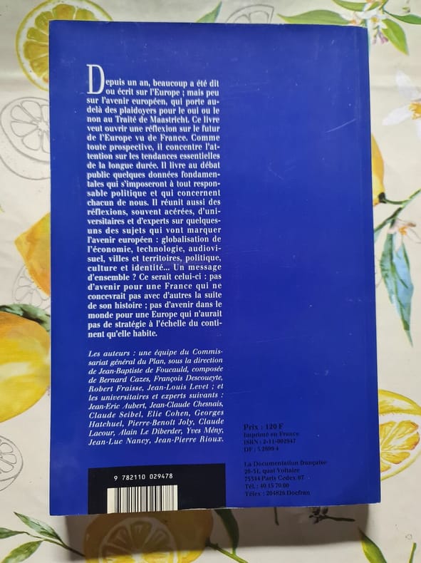 La documentation Française Sans date. Ouvrage collectif dirigé par Jean-Baptiste de Foucauld pour le Commissariat général du Plan publié en 1993. Il propose une réflexion prospective sur l'avenir de l'Europe depuis une perspective française en identifiant les tendances de long terme et les données fondamentales pour le débat politique