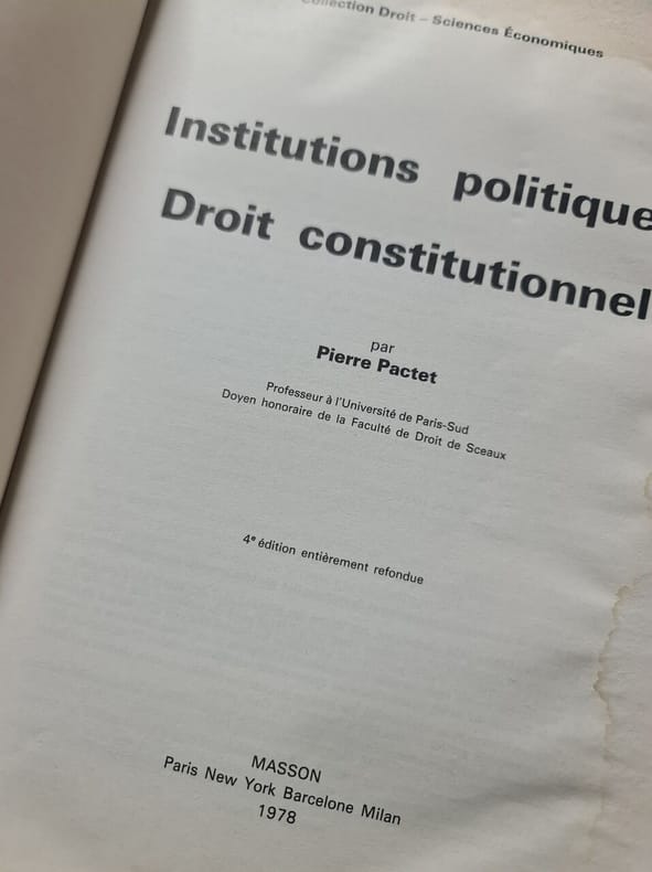Editions Masson 1994 1994. Pierre Pactet: Institutions politiques; Droit constitutionnel/ Masson 1994 . Pierre Pactet: Institutions politiques; Droit constitutionnel/ Masson 1994