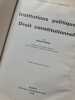 MASSON Sans date. Manuel de droit constitutionnel couvrant l'ensemble de la matière qui étudie les données de base des régimes politiques les grands régimes étrangers l'histoire constitutionnelle française et consacre une analyse détaillée à la Cinquième République. L'ouvrage met l'accent sur les problèmes juridiques avec une présentation claire et accessible