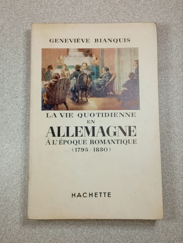 "L'auteur, Mme Geneviève Bianquis, germaniste éminente, étudie comment le Romantisme « est promptement descendu dans la vie courante », comment les œuvres littéraires se reflètent et se réfractent dans un mode de sensibilité, une sentimentalité. (...) Ce n'est pas que l'auteur méconnaisse les influences de la structure sociale sur les formes de sensibilité, bien au contraire : « Le romantisme, écrit-elle, ne touche pas les couches inférieures de la population... c'est affaire de gens cultivés, dont il colore la vie intellectuelle et la vie morale.» Mais elle s'appuie sur ce qu'elle connaît admirablement, les sources littéraires : plus de soixante volumes de Mémoires, recueils de lettres, récits de voyages, figurent à la bibliographie. C'est donc par les yeux d'une petite élite que nous contemplons l'époque, et d'une élite qui se pique de bien écrire, qui recherche naturellement le trait brillant, la description pittoresque, la nuance subtile. Les descriptions de la misère même, de la guerre ou de l'injustice, se colorent d'humour, de poésie ou d'une indignation assez rhétorique, comme il sied entre gens de bonne compagnie. Les commentaires personnels de l'auteur ne peuvent suffire à redresser cette vue partiale et partielle des choses ; « l'Allemagne à l'époque romantique », c'est finalement l'Allemagne observée par les Romantiques. Ceci dit, la description de l'élite, de ses mœurs, ses états d'âme, ses goûts, classe le livre comme un des meilleurs de la collection. Une plume alerte et sensible nous promène des salons de Berlin aux petites Cours du Sud, du cénacle romantique de Iéna aux amphithéâtres de Tubingen. Quelques incursions dans les maisons et les mentalités plus modestes de la petite bourgeoisie, où la Bible et l'almanach remplacent philosophes et poètes, complètent le tableau. Au détour des pages se détache tel ou tel type social bien caractérisé : le pasteur de village, le professeur d'Université, la femme du monde, la femme d'intérieur : beaucoup de femmes. G. Bianquis insiste avec raison sur le rôle exceptionnel des femmes à cette époque, et sur la preuve a contrario qu'en fournit la période suivante, après 1830 : « Les hommes, désormais plus préoccupés d'affaires « sérieuses », désertent les salons et élisent la brasserie. Les femmes, qui n'ont aucun goût pour la politique, n'aiment plus la conversation des hommes. C'est une époque nouvelle et différente, plus dure et plus réaliste, qui s'annonce. Alors c'en est fini du romantisme, de la sentimentalité, du raffinement littéraire et du bel esprit. » (...) Parmi tant d'autres mérites, G. Bianquis a celui de nous rappeler que nous écrivons une histoire trop exclusivement masculine." (Pierre Ayçoberry, Annales ESC, 1959)