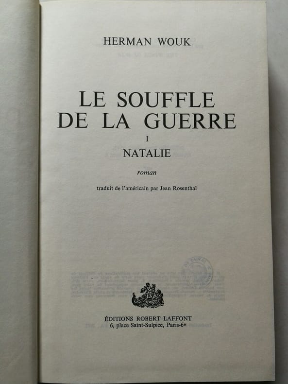 ÉDITIONS ROBERT LAFFONT Sans date. Le Souffle de la guerre Tome 1 : Natalie est le premier volume d'une saga romanesque d'Herman Wouk sur la Seconde Guerre mondiale publié en français par les éditions Robert Laffont et J'ai Lu. Le roman explore les événements de la guerre et ses impacts avec un avertissement sur l'importance de ne pas oublier les leçons de ce conflit