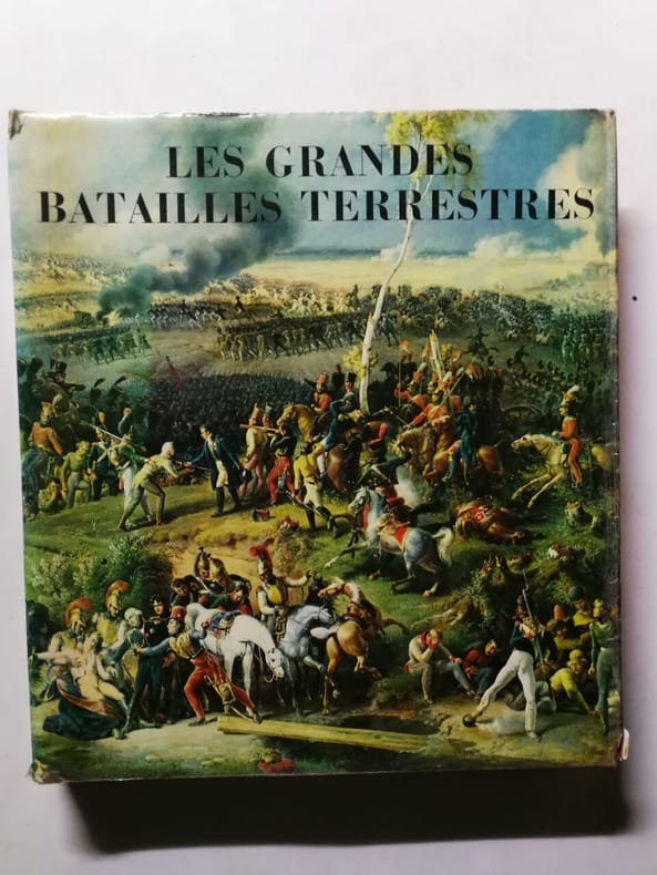 Editions du Pont Royal 1964, grand in-4 (32 x 28 cm) cartonnage éditeur sous jaquette illustrée, 304 p. (dos de la jaquette légèrement défraîchi, sinon très bon exemplaire) Première édition française, préfacée par le général Jean-Etienne Valluy. Texte sur 2 colonnes, belles illustrations NB et couleurs à toutes les pages. Détaille 27 grandes batailles, de Rocroi en 1643 aux Ardennes en 1944-45, en passant par Fontenoy, Saratoga, Waterloo, Gettysburg, Tannenberg et El Alamein... Du beau travail éditorial.