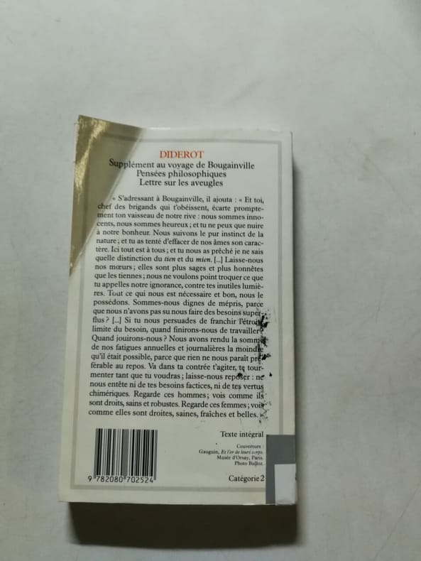 GF-Flammarion Sans date. Le Supplément au voyage de Bougainville est un conte philosophique de Denis Diderot (1772) qui prend la forme d'un dialogue. Il critique la civilisation européenne et la colonisation à travers le regard d'un vieillard tahitien tout en proposant une réflexion sur le bonheur les mœurs et les valeurs. L'œuvre combine humour hardiesse et une écriture légère pour interroger les fondements moraux et sociaux