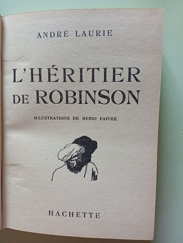 Hachette 1933 256 pages 1933. 256 pages. L'Héritier de Robinson est un roman d'aventure publié en 1884 par André Laurie qui propose une suite imaginative à l'œuvre de Daniel Defoe. Il raconte l'histoire de Chandos Robinson un jeune Anglais convaincu d'être un descendant du célèbre navigateur qui doit fuir Calcutta après la mort de son père et se retrouve confronté à des aventures périlleuses incluant un naufrage sur une île déserte