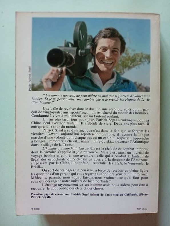 Flammarion 1977 260 pages 1977. 260 pages. Le livre raconte l'histoire de Patrick Segal un jeune homme de 24 ans sportif accompli qui devient paraplégique après avoir reçu une balle dans la colonne vertébrale le 6 avril 1972. Condamné à vivre en fauteuil roulant il décide un an plus tard de partir seul en Chine puis entreprend un tour du monde transformant son handicap en une série d'aventures extraordinaires pour prouver que la vie continue