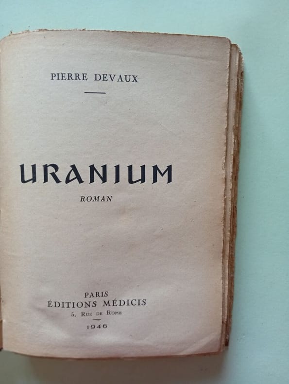 ÉDITIONS MÉDICIS 1946 251 pages 1946. 251 pages. Roman de science-fiction paru en 1946 écrit par Pierre Devaux auteur connu pour ses ouvrages de vulgarisation scientifique. Décrit comme un "roman parisien d'anticipation de crime et de sang" il explore probablement les implications sociales ou criminelles de la technologie nucléaire dans l'après-guerre