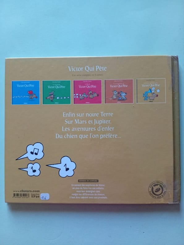 CHOURS 2016 32 pages 20 7x24 7x0 7cm. 2016. Broché. 32 pages. Victor un chien pétomane devenu célèbre découvre une trompette lors d'une promenade et décide de se lancer dans la musique mais ses projets ne se déroulent pas comme prévu. Cette aventure humoristique cinquième tome de la série permet aux enfants d'aborder les thèmes de la tolérance et de la différence