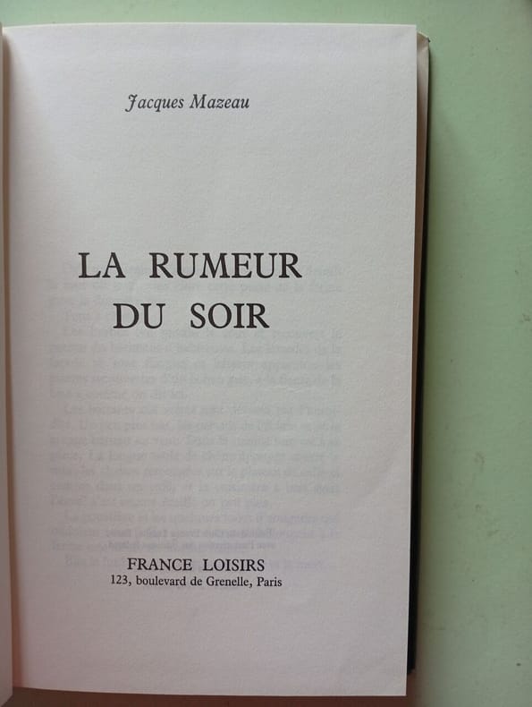 France loisirs 1988 237 pages in8. 1988. cartonné jaquette. 237 pages.