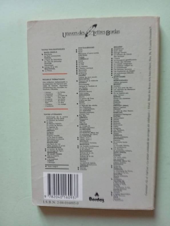 'Univers des Lettres Bordas', sous la dir. de Fernand Angué. Edité par Jacques Spica. Classification Dewey : 840.05-XVIII ème siècle