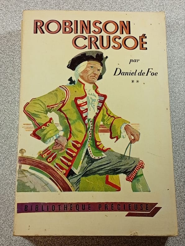 Titre : Vie et aventures de Robinson Crusoé Auteur : Defoe Daniel Éditeur : Librairie Hachette et Cie Lieu : Paris Date : 1874 Format : in-12, env. 18 x 12 cm Reliure : Cartonnage éditeur, dos toilé vert titré or, plats imprimés encadrés, mention « Prix 2 f » et cachet imprimé « Offert par les éditeurs » État : Frottements d’usage aux coins et aux coiffes, petite fente en tête du dos, papier légèrement bruni avec rousseurs éparses, intérieur solide Langue : Anglais avec notes en français Description : Nouvelle édition scolaire de Robinson Crusoe publiée avec une notice, un argument analytique et des notes en français par Alexandre Beljame. Page de titre datée 1874, impression Lahure (Rue de Fleurus). Texte principal en anglais, abondantes notes explicatives et vocabulaire en français pour l’étude. Bel exemplaire au cartonnage Hachette d’origine, typique des éditions pédagogiques du XIXe siècle.
