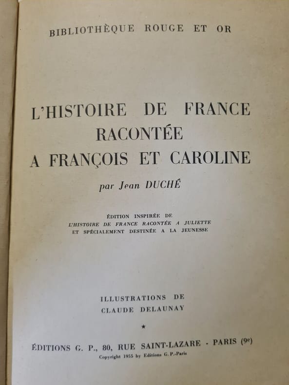 ÉDITIONS G. P Sans date. Ce livre est une adaptation pour la jeunesse de 'L'Histoire de France racontée à Juliette' spécialement conçue pour les jeunes lecteurs François et Caroline. Il présente l'histoire de France de manière accessible et pédagogique