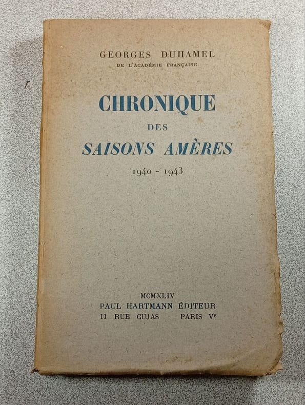 Paris Paul Hartmann 1944 Un volume in-8 broché, couverture bleue, 228 pages. Bon état.