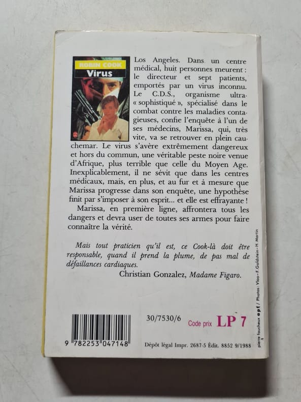 1ere édition Contents, Chapitres : 1. Une maladie de jeunesse : Qu'est-ce qu'un virus informatique - Bombe et virus logique, cheval de troie et ver - 2. Le phénomène des virus informatiques : Core war, une lutte à coup de 0 - Le virus Macmag - Un virus asiatique - Un jeu de plus en plus dangereux - La paralysie d'Internet - La croisade des virus busters - Le virus, la loi et la morale - 3. L'attaque virale : Le code d'un virus - Les types de virus - Comment les virus se propagent-ils ? - Quelles sont les voies de communication ? - Les niveaux d'infection - 4. Comment se protéger : Outils de protection - Importance du bon sens - 5. Virus connus : Ms-Dos - Macintosh - 6. Les logiciels anti-virus papier tres legerement jauni, sinon tres bon etat - format de poche
