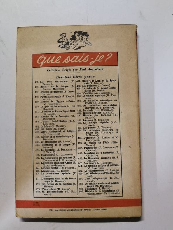 La première encyclopédie de poche fondée en 1941 par Paul Angoulvent, traduite en 43 langues, diffusée, pour les éditions françaises, à plus de 160 millions d'exemplaires, la collection Que sais-je? est l'une des plus importantes bases de données internationnales, construite pour le grand public par des spécialistes. 3800 titres ont été publiés depuis l'origine par 2500 auteurs. Classification Dewey : 150-Psychologie